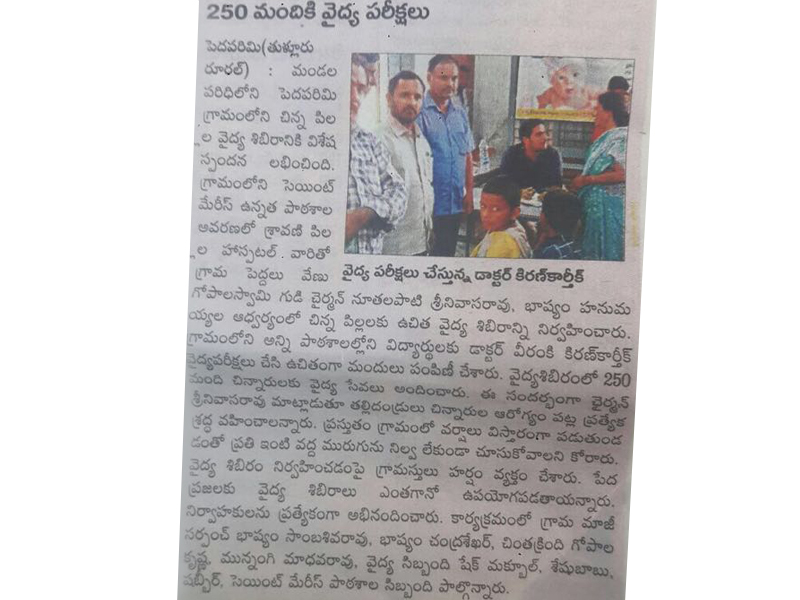 The growing surge between the demand and supply of medical facilities is unhealthy for the progress of our society. Providing ease to the hectic routine of professionals, Sravani Hospital used to conduct Medical Camps in Guntur. Hospital team arranged the entire camps with the best doctors. Dealing with the fast pace of modern life is not easy, especially when healthcare is a concern. The aim of the medical camp was to understand and assist the growing medical needs of our patients.