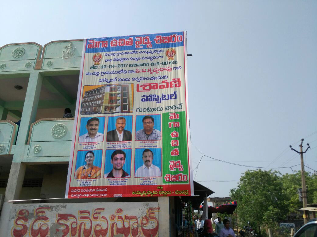 Sravani Hospital organized medical camp at Valaparla Village, Prakasam District on 2.4.2017. The health camp was organized with the objective of providing medical examination/check-up for the patients. About 300 people attended the camp. The camp started with a medical check-up. Our Panel of 5 Doctors leaded the camp and volunteered to contribute towards achieving the objectives like Free Blood Glucose, ECG and Medical Examination.